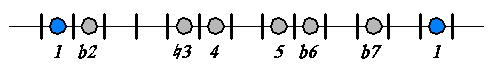 И опять-таки, необходимо видеть отличия боксов мелодического минора от боксов натурального мажора, чтобы быстрее и легче их запомнить. В системе боксов можно представить любой лад, не только приведенные выше - натуральный мажор и минор, пентатонику, гармонический и мелодический миноры - принцип их построения не сложен. Но запоминать все возможные лады и гаммы в виде боксов - занятие не благодарное. Основные боксы для запоминания, как уже было сказано выше, - это боксы натурального мажора и пентатоники (и с блюзовой нотой). А вот самостоятельно строить боксы и упражняться игре в них - это очень полезное занятие. Попробуйте самостоятельно построить систему боксом, например, для гармонического и мелодического мажоров, для испанского лада. Ниже приведены аппликатуры этих ладов на одной струне: