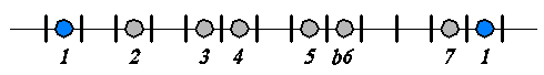 И опять-таки, необходимо видеть отличия боксов мелодического минора от боксов натурального мажора, чтобы быстрее и легче их запомнить. В системе боксов можно представить любой лад, не только приведенные выше - натуральный мажор и минор, пентатонику, гармонический и мелодический миноры - принцип их построения не сложен. Но запоминать все возможные лады и гаммы в виде боксов - занятие не благодарное. Основные боксы для запоминания, как уже было сказано выше, - это боксы натурального мажора и пентатоники (и с блюзовой нотой). А вот самостоятельно строить боксы и упражняться игре в них - это очень полезное занятие. Попробуйте самостоятельно построить систему боксом, например, для гармонического и мелодического мажоров, для испанского лада. Ниже приведены аппликатуры этих ладов на одной струне: