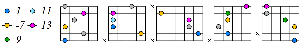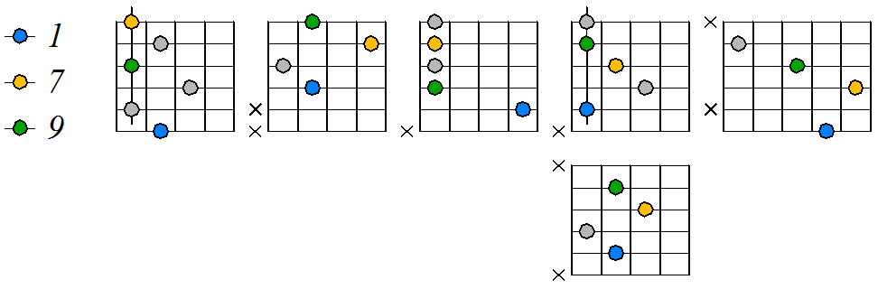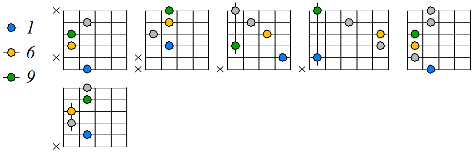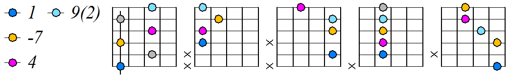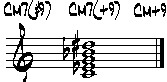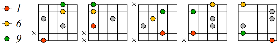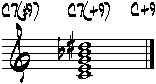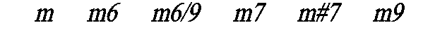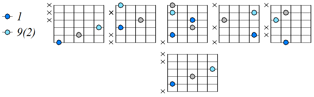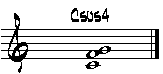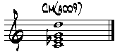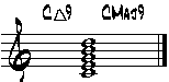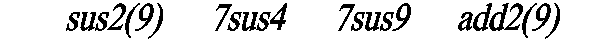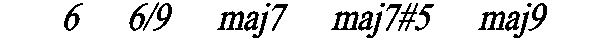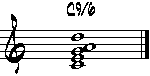 При записи основного тона аккорда чаще всего используют следующие обозначения (варианты, указанные в скобках, применяются реже): C, C#(D Строчная латинская буква m, следующая за прописной (между ними может быть только знак альтерации) указывает на то, что аккорд минорный (в его основе лежит минорное трезвучие): Увеличенное трезвучие обозначают знаком "+" (или +5) или сокращением aug (от англ. augment - увеличение): Для обозначения мажорных аккордов с добавленной большой септимой (седьмая ступень) применяется сокращение Maj или maj7 (от англ. major - мажорный). Так же вместо данного сокращения используется символ " Для обозначения уменьшенного септаккорда (в его основе уменьшенное трезвучие) используют сокращение dim (от англ. diminish - уменьшать) или знак " Цифра 7, прибавленная к мажорному или минорному трезвучию, указывает на наличие в аккорде уменьшенной септимы. Это доминантсептаккорд: Цифра 9, прибавленная к мажорному или минорному трезвучию, указывает на наличие в аккорде большой ноны, т.е. девятой ступени, а так же уменьшенной септимы, которая хоть и не обозначается, но обязательно присутствует: Цифра 9, прибавленная к большому мажорному септаккорду, указывает на наличие в аккорде большой ноны: Цифра 6, прибавленная к мажорному или минорному трезвучию, указывает на наличие в аккорде большой сексты, т.е. шестой ступени. В данном случае септима отсутствует: Соответственно, если к аккорду прибавлены и большая секста и большая нона, то в обозначении присутствуют обе цифры 9 и 6: Цифра 11, прибавленная к мажорному или минорному трезвучию, указывает на наличие в аккорде малой септимы, большой ноны, чистой ундецимы (одиннадцатая ступень): Цифра 13, прибавленная к мажорному или минорному трезвучию, указывает на наличие в аккорде малой септимы, большой ноны, чистой ундецимы и большой терцдецимы: Вернемся к знакам альтерации. Бемоль ( Если рядом со знаками "-" и "+" нет цифр, то они относятся к квинте. Знак "+" идущий за цифрой, также обозначает повышенную квинту: Если после основного обозначения аккорда следует запись sus2 (sus9) или sus4, то такой аккорд называют аккордом с задержанием (от англ. suspended - задержанный). С задержанием может быть трезвучие или септаккорд, в котором терция (третья ступень) заменена на секунду (вторая ступень) - sus2, или кварту (четвертая ступень) - sus4. Для того чтобы показать добавленный тон к аккорду используют приставку add, за которой следует цифра (или буква), указывающая на добавленный тон (соответствует номеру ступени), например add9, addD, add11.