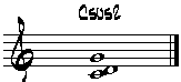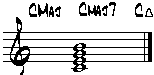 Буквенно-цифровое обозначение аккордов В этом разделе, подведя курсор мышки к символу аккорда и щелкнув по нему, можно посмотреть различные варианты аппликатур выбранного аккорда на грифе гитары. В обозначении аккордов используются буквы, цифры и знаки. Прописная буква латинского алфавита указывает на ноту, от которой построен аккорд, т.е. основной тон аккорда. Используются следующие буквы: C-до D-ре E-ми F-фа G-соль A-ля B-си. Если рядом с прописной буквой нет строчных букв и знаков, аккорд является мажорным (в его основе лежит мажорное трезвучие): Если за буквой следует знак