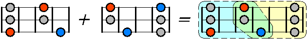 Если объединить правую и левую аппликатуры, то получим аппликатуры для игры в одной позиции на всех шести струнах:
